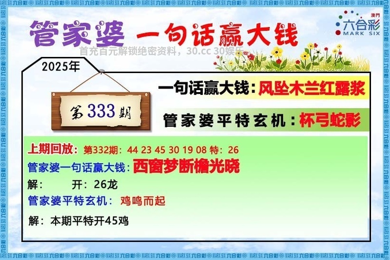 337期:一句话赢大钱【蒼卜林中飞玉出】 |